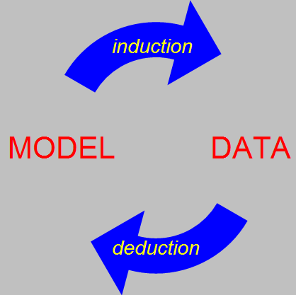 circularly links DATA and MODELS: we collect data to test (deduce the