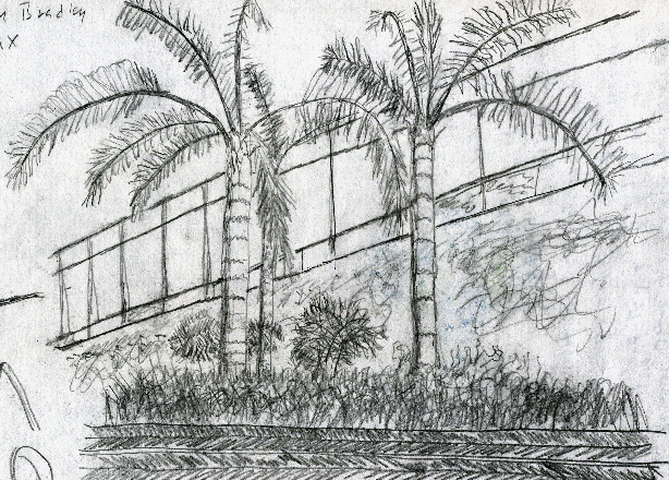 The trip was uneventful. I didn’t have enough time in LA to go anywhere except the Tom Bradley International Terminal (sketch), where I wandered among the throngs going to/coming from overseas, but this is where one of the themes of this trip occurred to me: I = T x A x P. Our Impact on the planet is the product of the Technology that enables us to travel, the Affluence that affords it, and the many People who do it. So like a global flood we slosh around the planet to exotic places, and whatever the effects, the flow is vast. Every year billions of people take off from somewhere, and all of them land somewhere else (a very few crash). The numbers keep increasing, through boom and bust, peacetime and terrortime. We want to be somewhere else and none of us dislikes the experience enough, or feels guilty enough about the carbon footprint of travel, to curtail our restlessness. It’s what we do—for business, for pleasure, for family—part of our modern humanness.