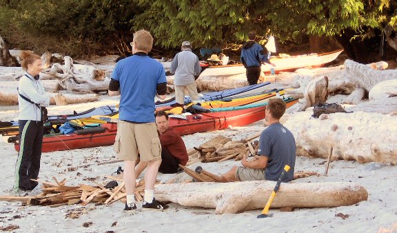 It was not exactly fun, and only occasionally relaxing, but certainly an adventure, as REI rightly calls it,and full of memories: images, feelings, sounds, smells, and of course that reflexivity based on remembering experiences part of which was the knowledge that you would be remembering them. Humanity is going everywhere (I even saw a guidebook to Nigeria, of all places) and usually we voyage to places full of other travelers by traversing artificial routes: highways, railways, airways, ferry ways. But our experience was participation in an "adventure" that is itself artifice but has at its core quite real challenges. Setting up and organizing your tent is a new challenge, as is cooking outdoors; although we didn't cook, nor were these primitive meals. When you paddle the 5 kilometers of moderately rough seas between Hand and St Ines Islands you must maintain your course, keep up with the group, remain above water, and manage (or ignore) the various pains. Failure to do so could result in injury or even death and at a minimum will certainly entail some embarrassment (perhaps a fate worse than death). Affluent, reasonably fit members of the intelligentsia, we climb mountains, hang-glide, sail, and paddle in order to face and cheat the primeval dangers: hypothermia, falling, drowning; something we never have to do sitting in warm dry rooms facing video screens. The risk keeps us coming back and, more importantly as Frankl tells us, we often have nothing more important to do than to make our meaning.