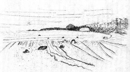 (The title photo is looking northwest from the camp on Gilbert Island; in the distance is the Sawtooth Range, about 1400 meters, still with patches of snow.)