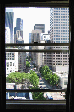 It was about 3PM when I settled into the hotel, which was an OK room facing what used to be highway 99 (did we travel it in the 1950s from LA to Seattle?) the west side of which literally looked down on the runways of SEA-TAC. I went back to the 'street' and after contemplating the strip 'scut' of the 'neighborhood' I decided to head back downtown, as I certainly wasn't going to spend my last day 'on vacation' dodging the hurtling traffic of the SEA-TAC 'neighborhood.' I asked the receptionist about transport and she said I could get the 194 bus direct to downtown and for $2.50 I could ride all day— for 1/20 of the price of my limo ride I could go anywhere in the region.