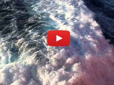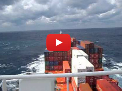 This video is forward on the starboard side of the main deck. If you keep your attention focused on the very center of the scene you may be able to see how the ship flexes, mainly to the right and left. All large ships do this, much as airplane wings 'flap' in turbulence; if these 'ships' were rigid they might break apart. (The image is jerky because the ship was always vibrating and I was crouched down on the deck.)