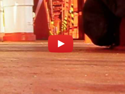 This video shows a large hatch being removed by the gantry so that boxes may be removed from or placed in the hold. Note that as soon as the gantry operator is sure that the hatch is free of the deck it is rapidly swung through the air. A man can be seen at the far left corner of the hatch.