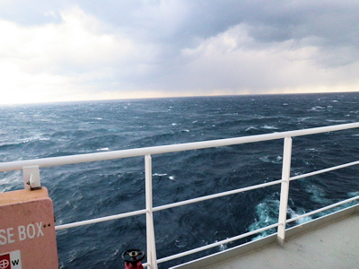 This is the scene from the bridge and the image I recall most from the voyage. You can see that the ship rolls quite a bit, especially in the relatively heavy seas we encountered on the first few days of the passage from Florida to Brazil; the North Atlantic in February.