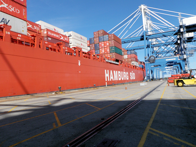 For 17 days I traveled about 5700 miles from Bayonne New Jersey to the principal cargo port of Pernambuco, Brazil aboard Hamburg-Süd’s Cap Jervis, an 870-foot container ship that makes a 49-day circuit between the US and Argentina. The first 9 days the ship visited 6 six east coast US ports and the last 8 days was a transoceanic passage from Ft Lauderdale FL to Suape, Brazil. This journal is organized not chronologically but according to the themes at the left, which you can visit in any order you like, or just skip around according to the pictures that interest you.